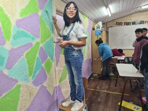 8.º básico se está destacando en embellecer su sala de clases, con gran talento, pero por sobre todo con gran sentido de identificación con su espacio y grupo curso. A veces lo que más cuesta es tener la voluntad de intervenir nuestro entorno y estas niñas lo están haciendo.