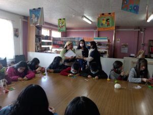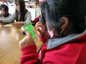 El día de lunes iniciamos nuestro reglentu wetripantü (semana del wetripantu) con un taller de ngerekan (Telar) donde la lamuen Ariela compartió sus conocimientos ancestrales con los estudiantes.