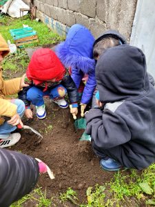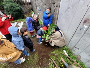 Dentro de las actividades de la semana pasada, los estudiantes de Preescolar ayudaron a anümn kiñe foike (plantar un canelo).